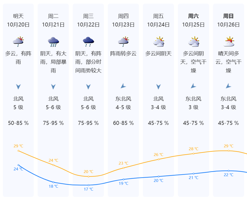 神”的合伙影响受冷氛围和“风,显大风降温降雨气候20-23日将有明,阵风8-10级沿海和高地最大,频密降雨,大雨到暴雨累计可达,20℃以下气温降至,显转凉体感明,正在20昼夜间至21日强风降温降雨最昭彰。